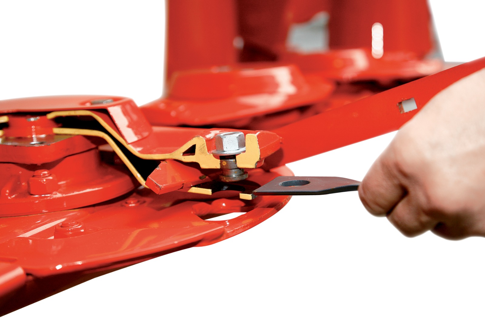 . Barra de corte OPTIDISC ELITE exclusiva de KUHN, libre mantenimiento, con cambio rápido de chuchillas (FAST-FIT).